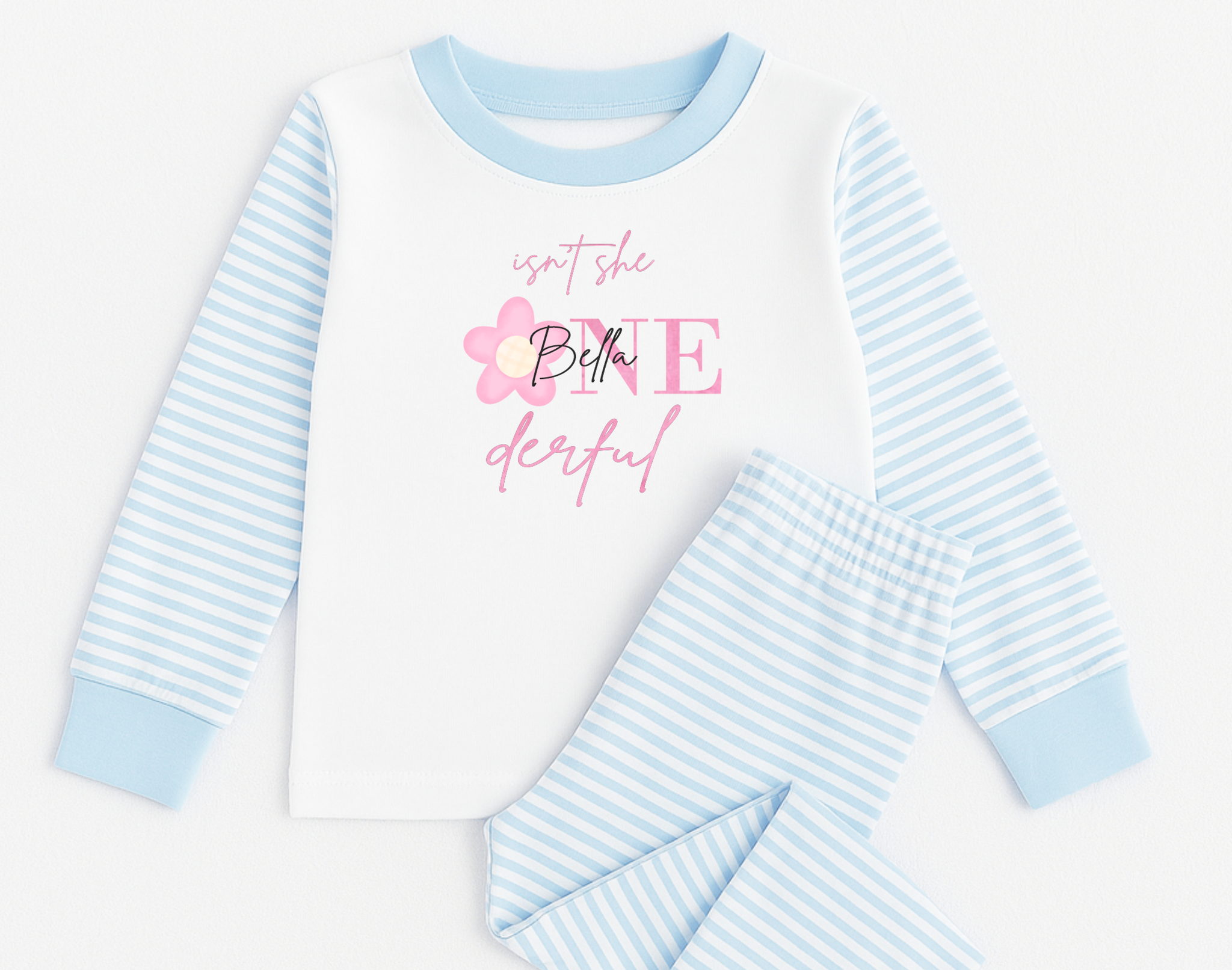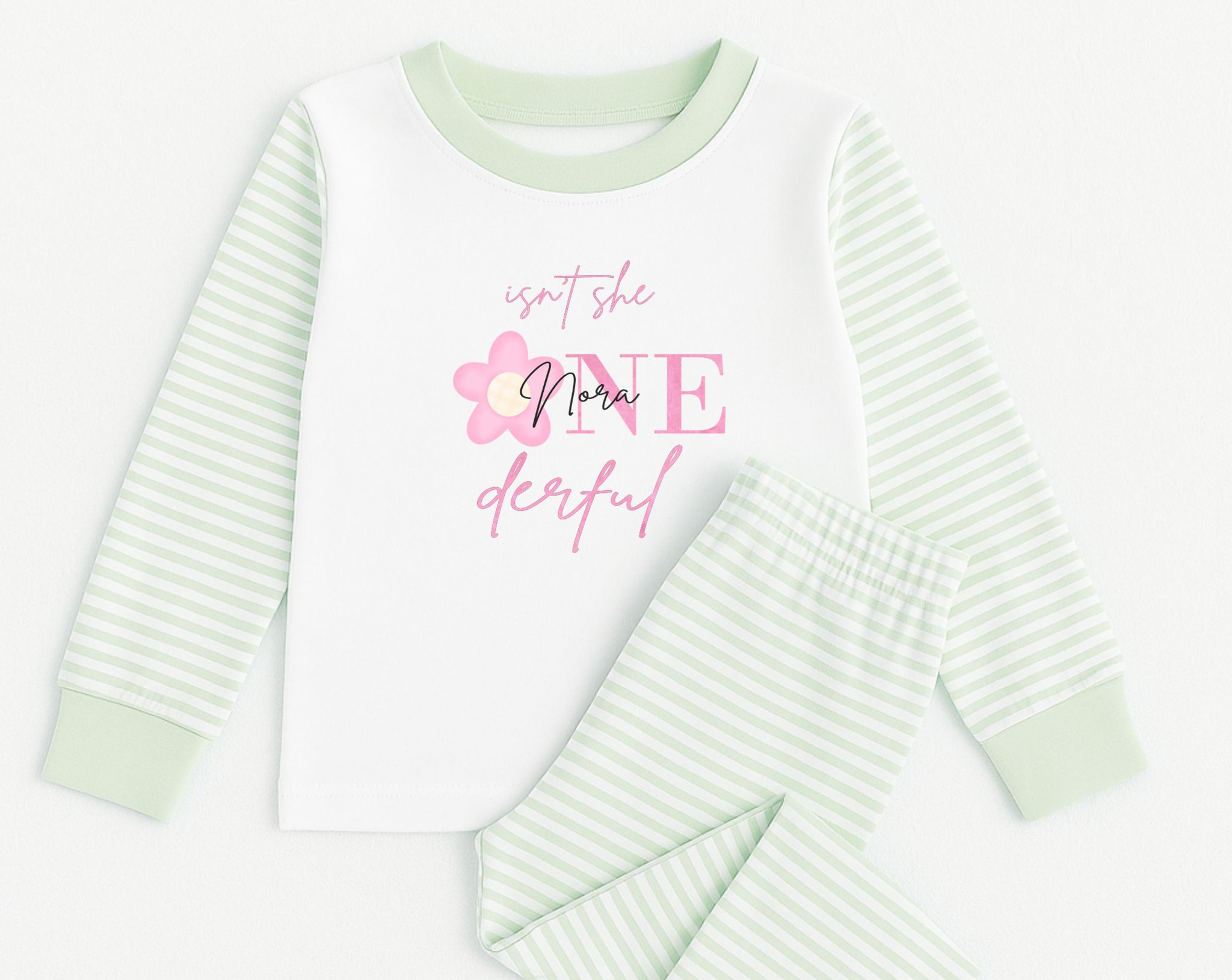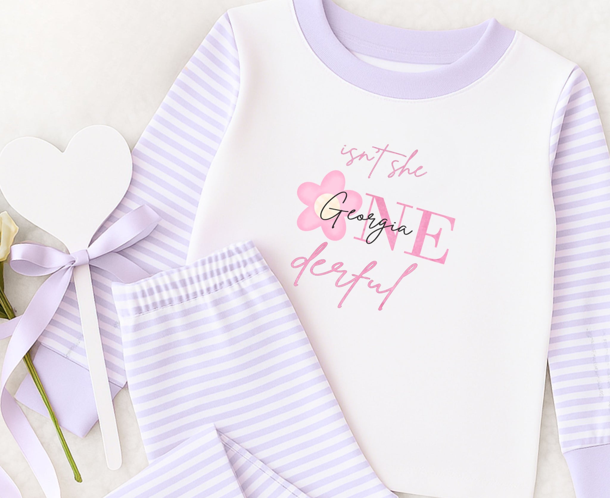 Personalised Isn't She One Derful ~ One First Birthday ~ Wonderful ~ Flower ~ Pjs, Pyjamas, Pajamas ~ Birthday Gift